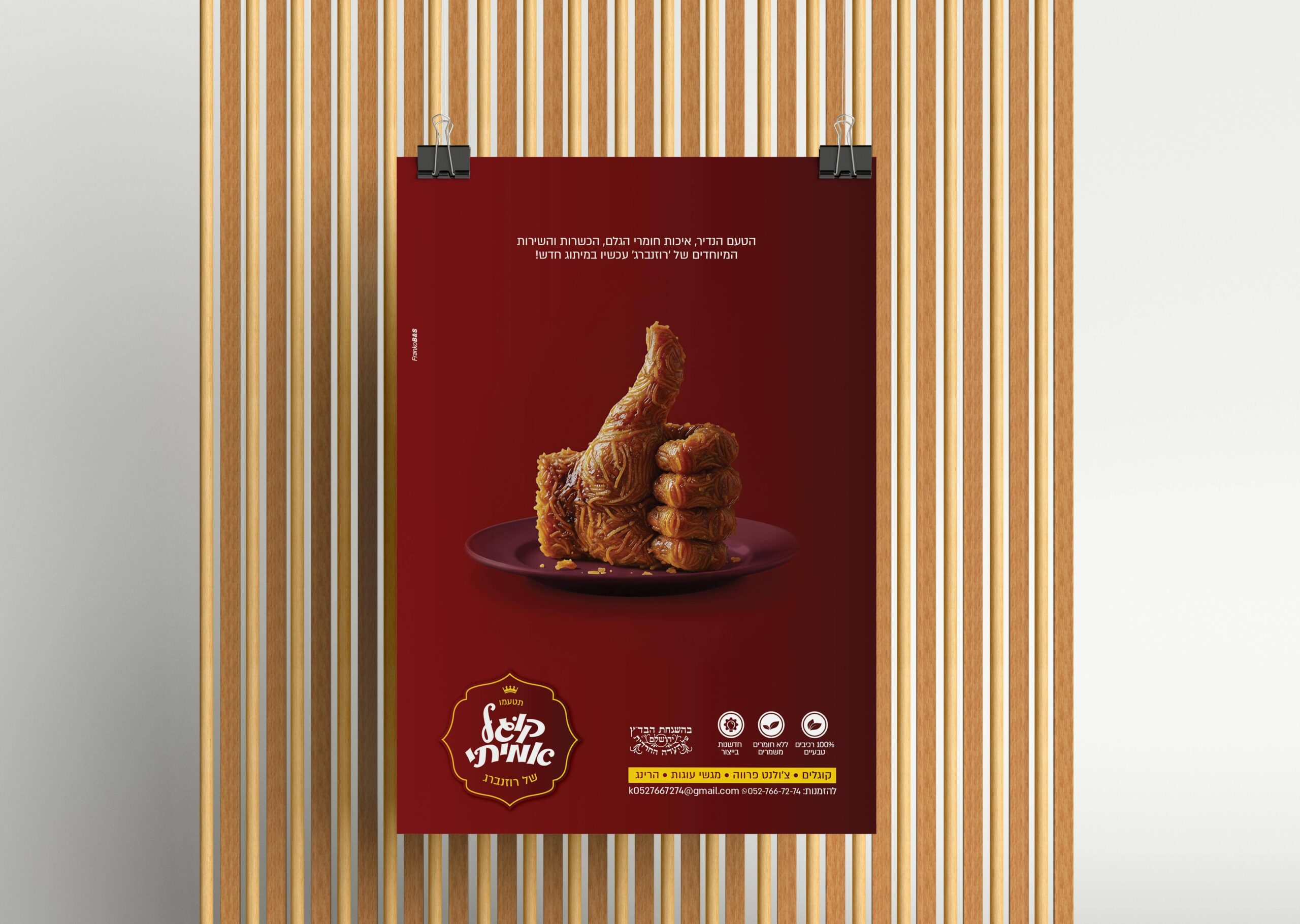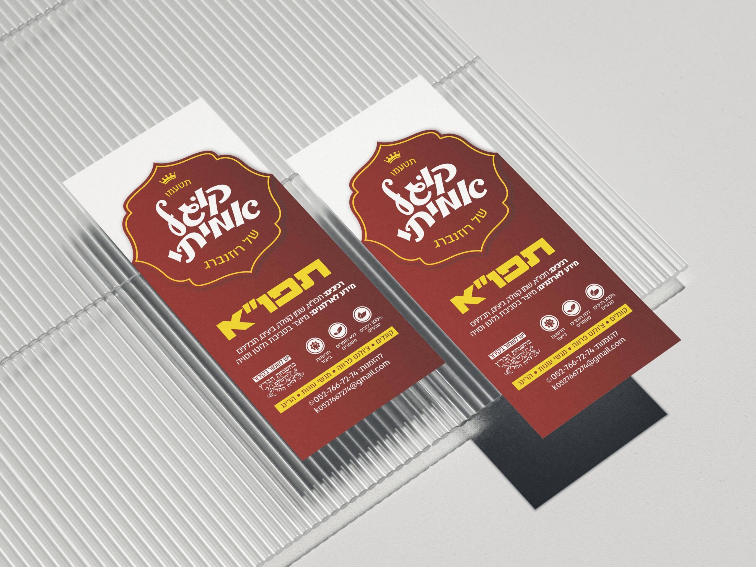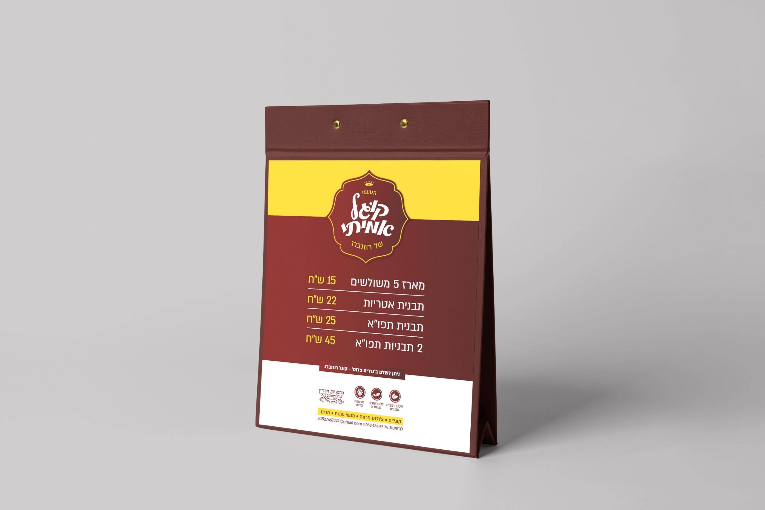 הטמעת המיתוג והגדלת המכירות נשענות על שפה עיצובית המעוררת תיאבון ותחושת פרימיום מיידית. הבחירה בצבע בורדו עמוק משדרת מסורת, חמימות וביתיות, בעוד נגיעות הצהוב יוצרות קונטרסט גבוה שבולט על המדף ומושך את עין הצרכן בתוך שניות.
